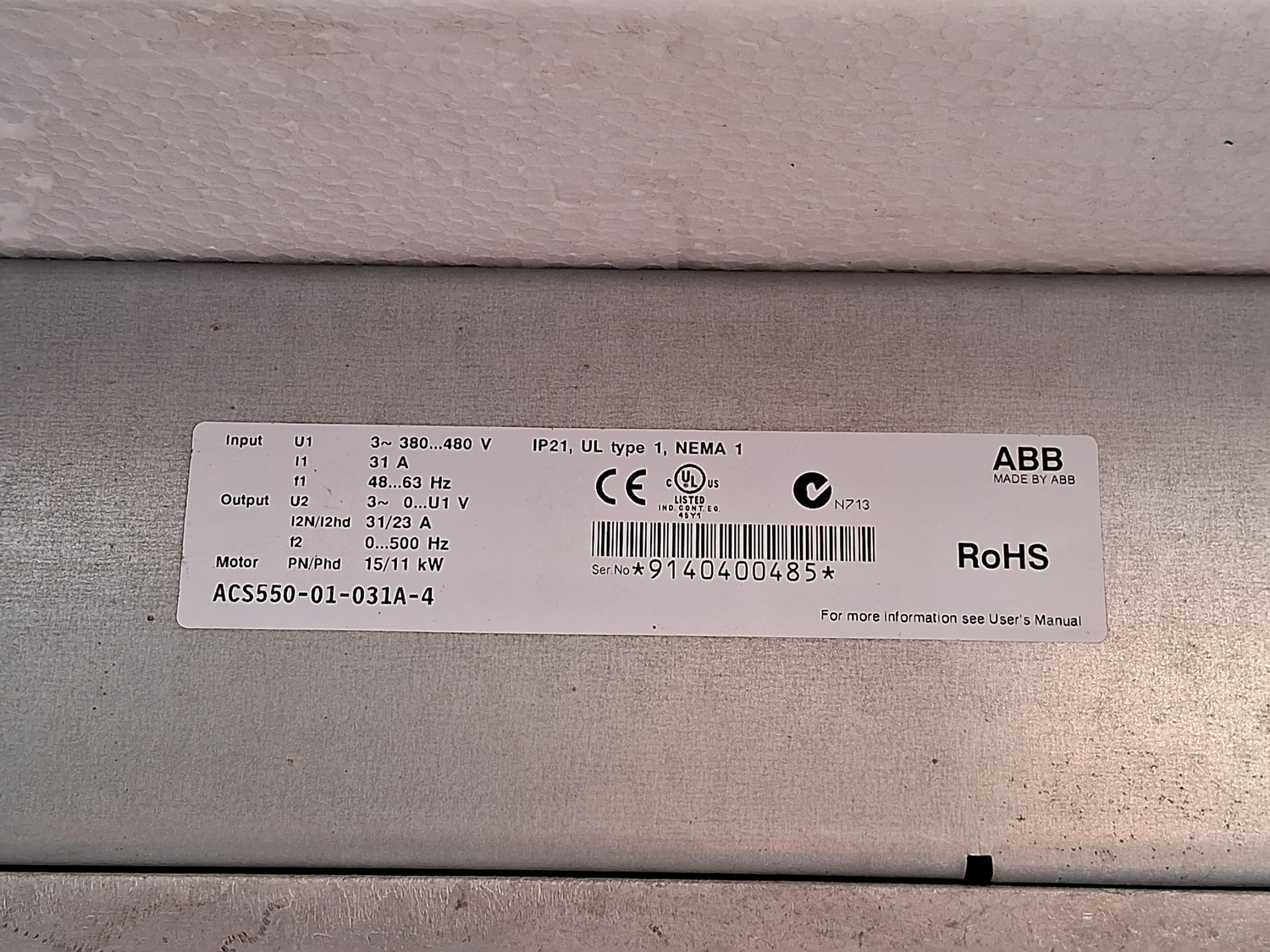The ABB ACS550-01-031A-4 is a general purpose variable frequency drive (VFD), also known as a frequency inverter, used for controlling the speed and torque of AC induction motors in industrial applications. It is part of the ACS550 series, which is designed for simplicity in installation, configuration, and operation.