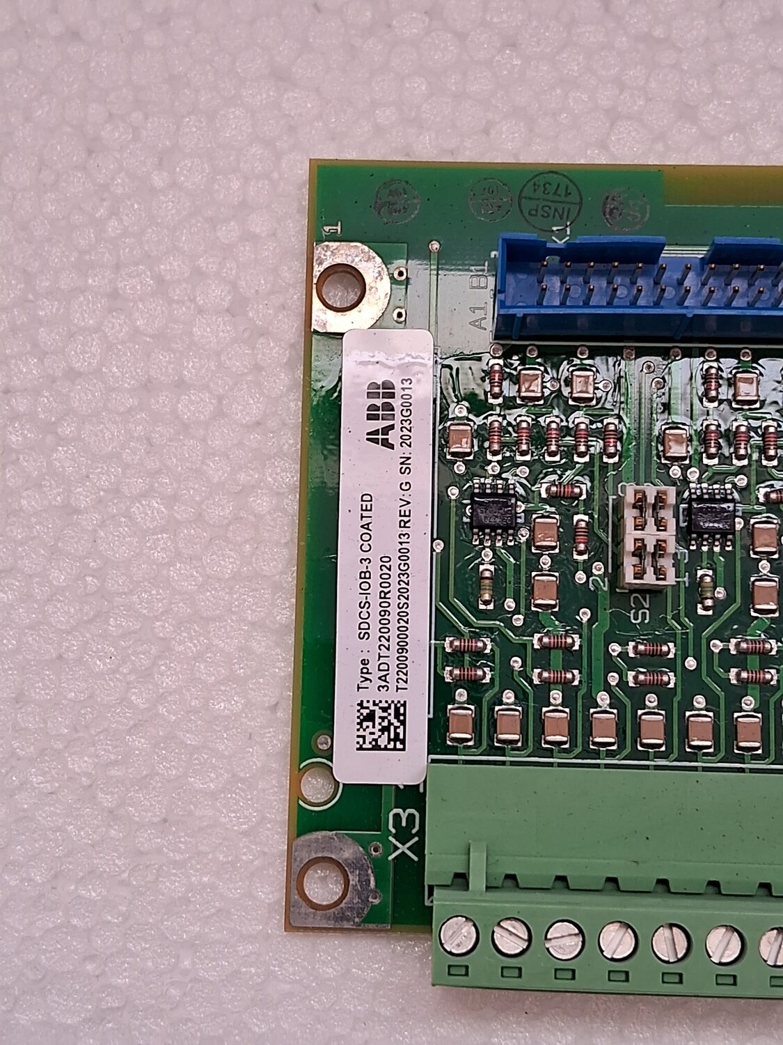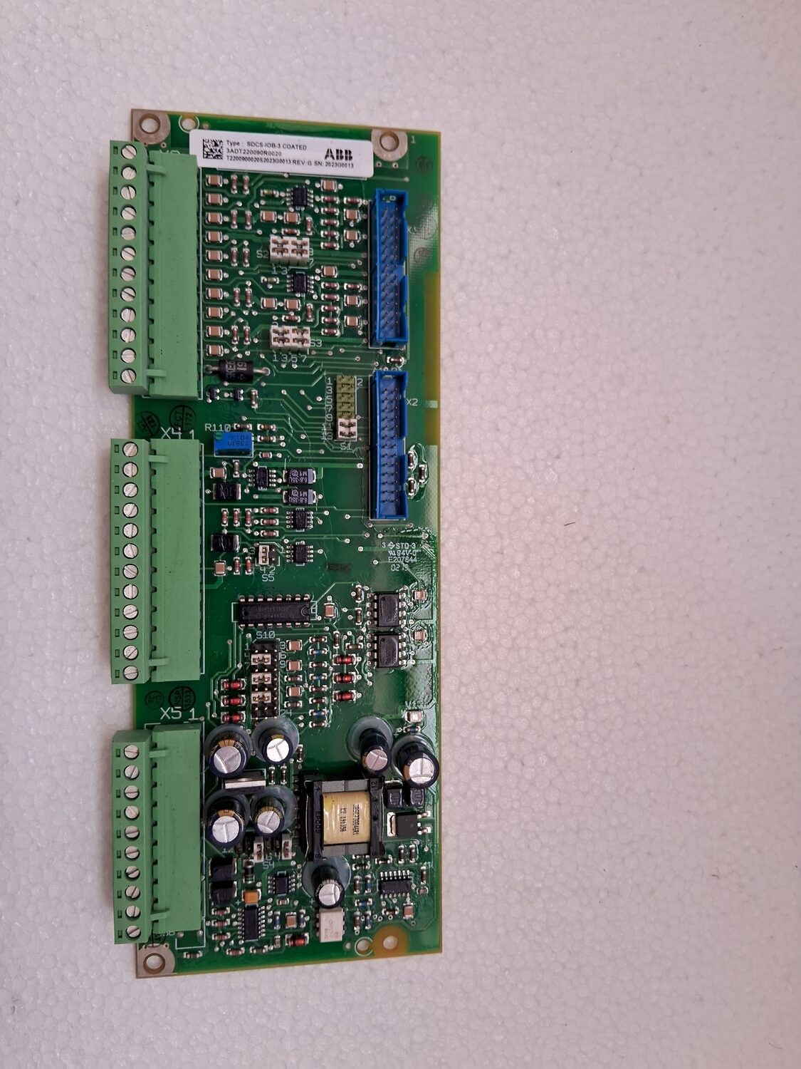 Type: It is an analog I/O module with 5 inputs and 3 outputs. The board shown is a coated version (SDCS-IOB-3 COATED), which offers added protection.