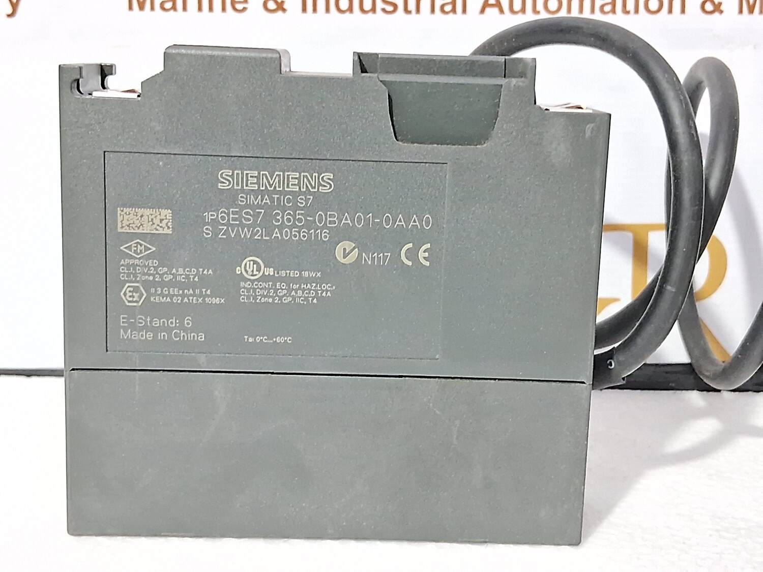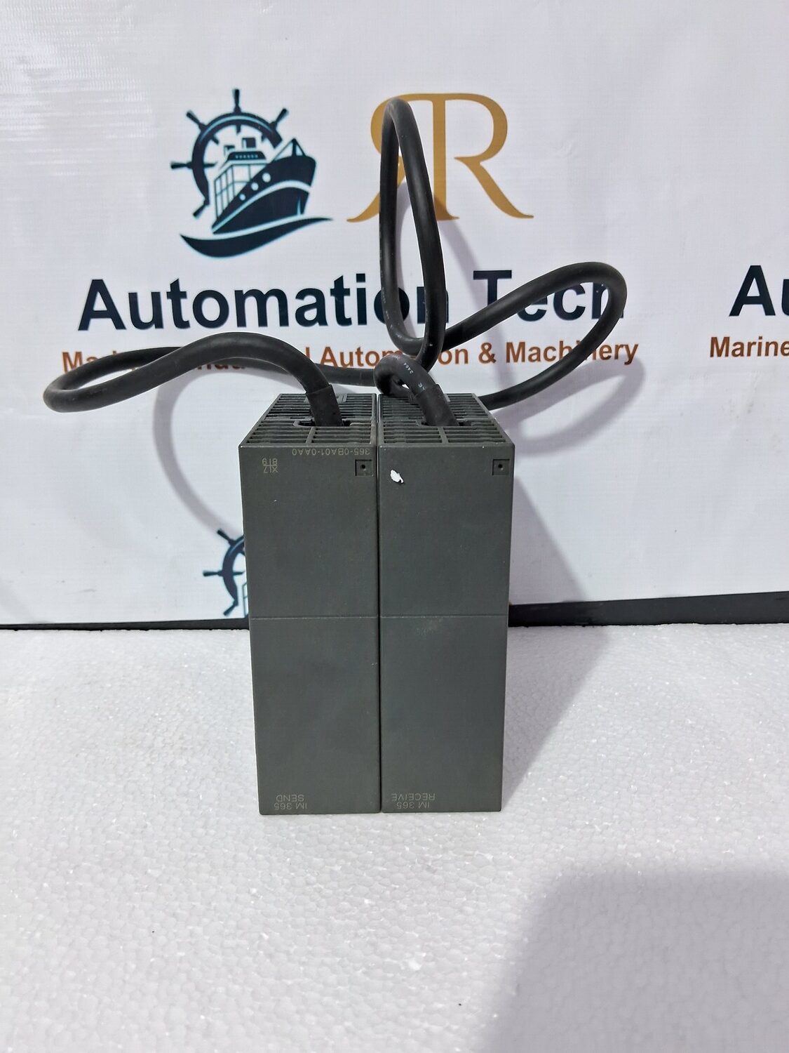 is an IM 365 interface module used to connect an expansion rack (ER) to a central controller (CC) in an S7-300 automation system configuration. The module comes as a pair, connected by a fixed 1-meter cable, and provides a cost-effective way to expand the I/O capacity without needing a separate power supply for the extension rack.